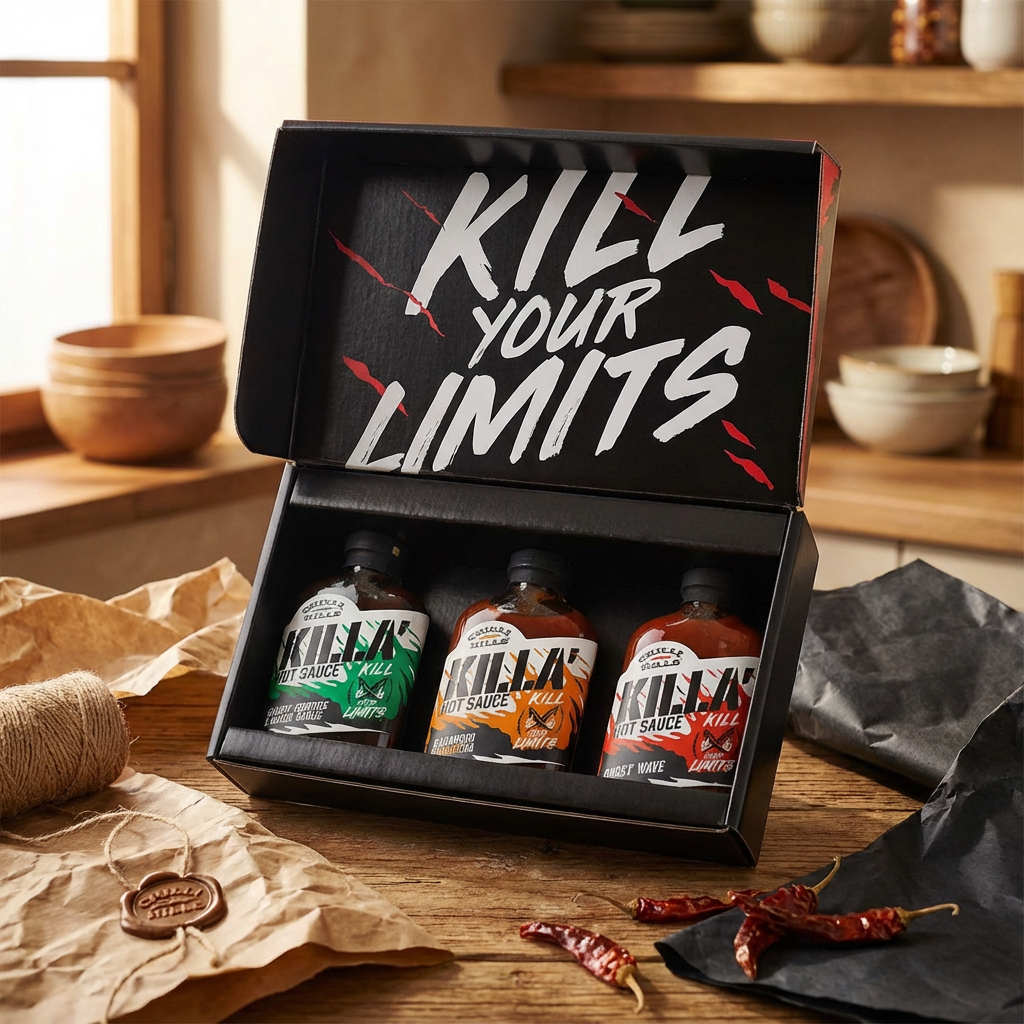KILLA’ HOT BOX este setul suprem pentru iubitorii de sosuri fermentate și arome profunde. Creat pentru cei care apreciază complexitatea gustului, acest box reunește trei sosuri picante fermentate timp de 12 luni, fiecare cu personalitate distinctă și intensitate bine controlată.